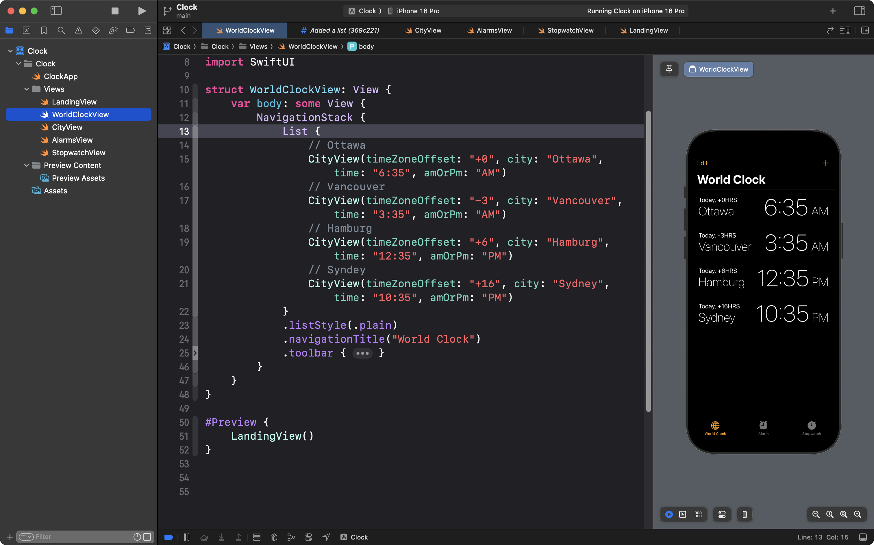 One example of where a List is useful would be in the World Clock interface we built earlier in this module: