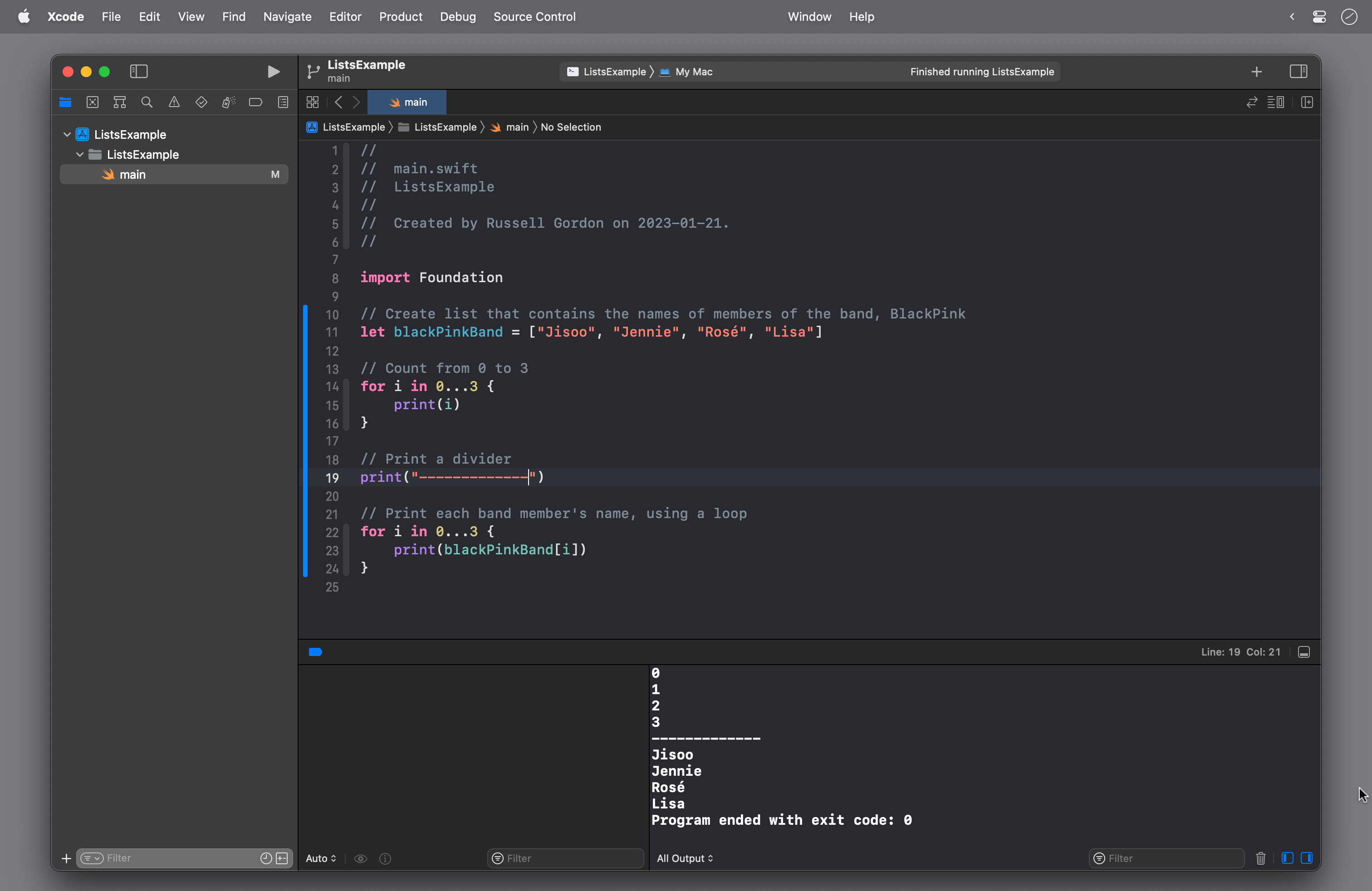 print(blackPinkBand[2])In a command-line app, the output looks like this: