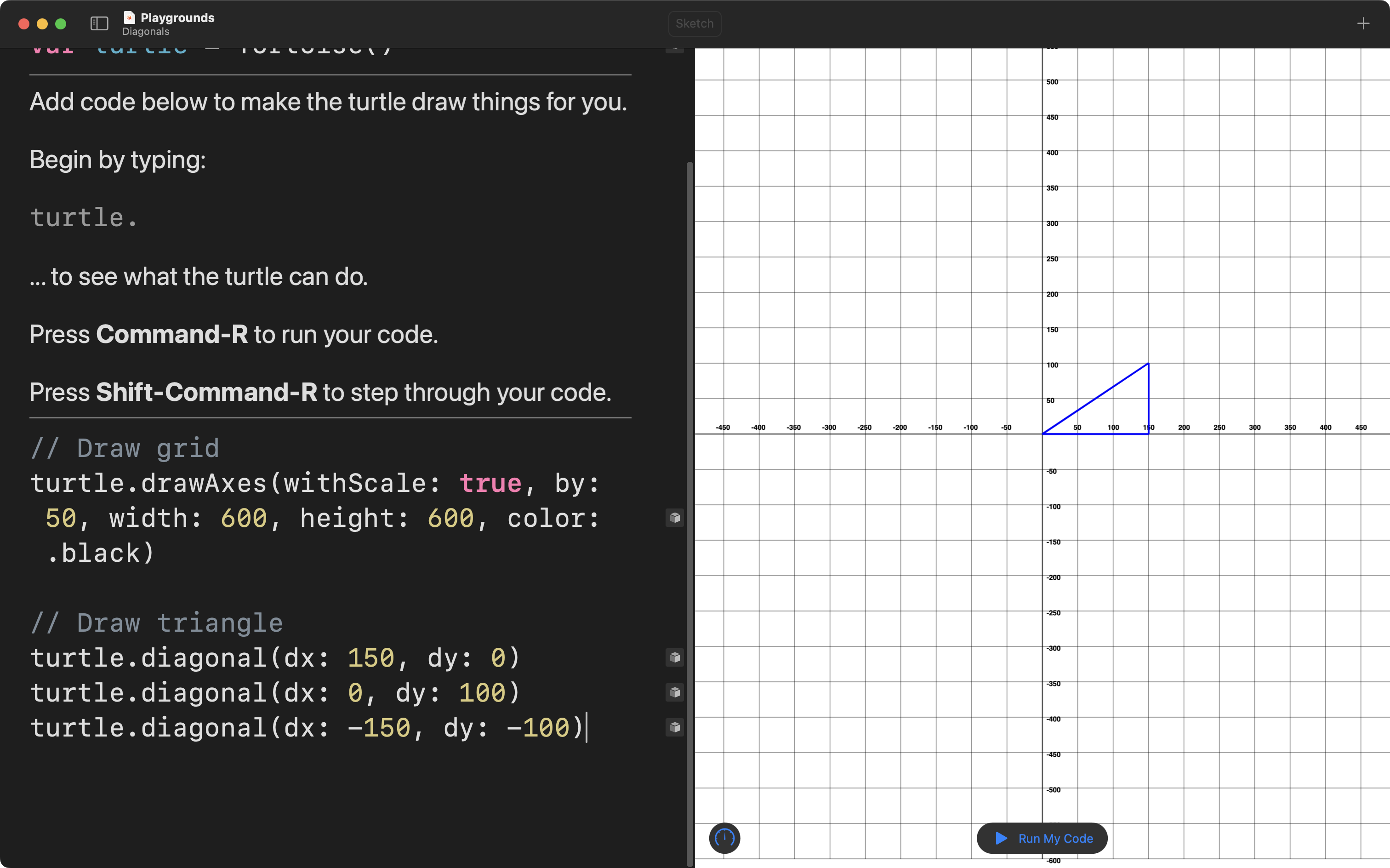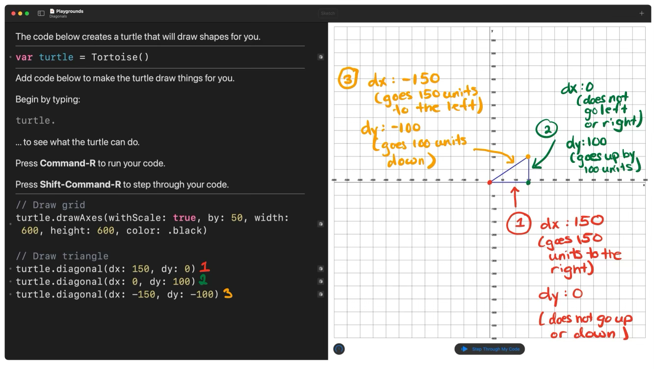 So… the turtle drawing framework has a shortcut. It is the diagonal command: