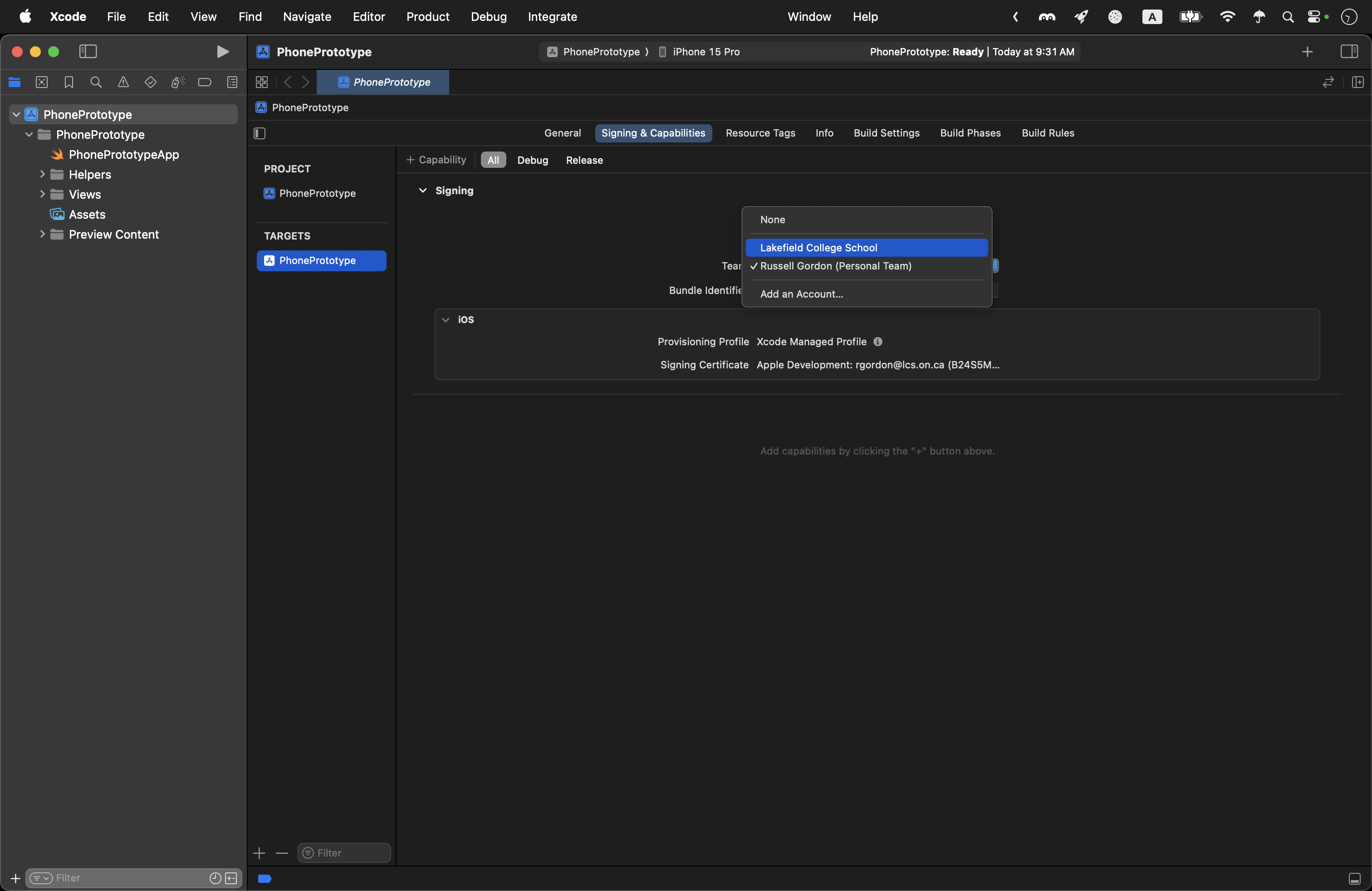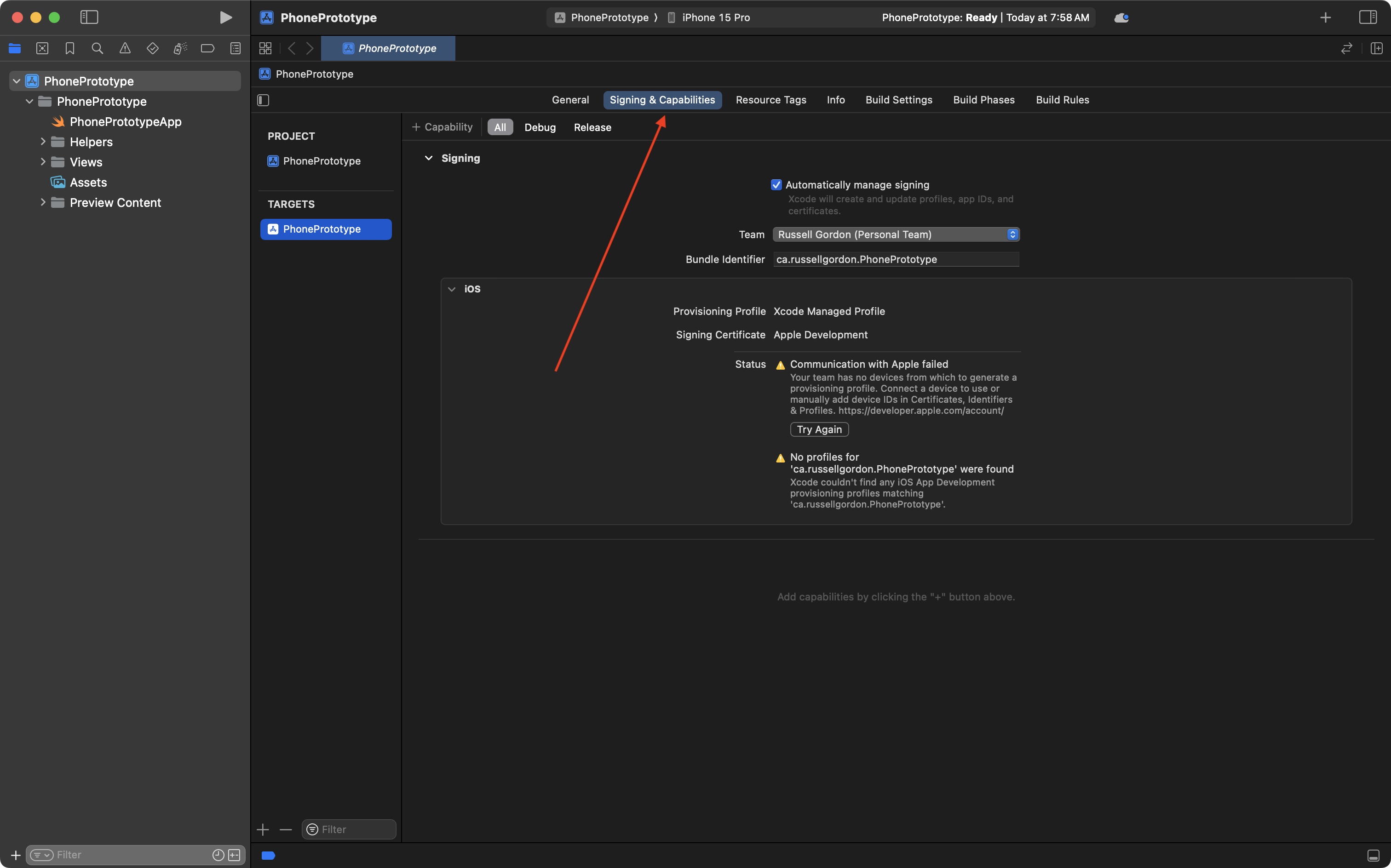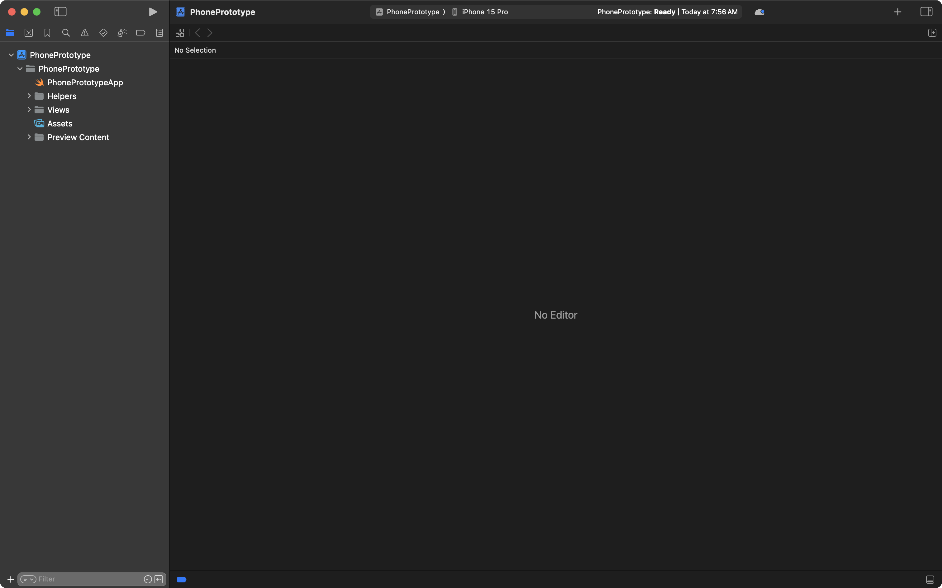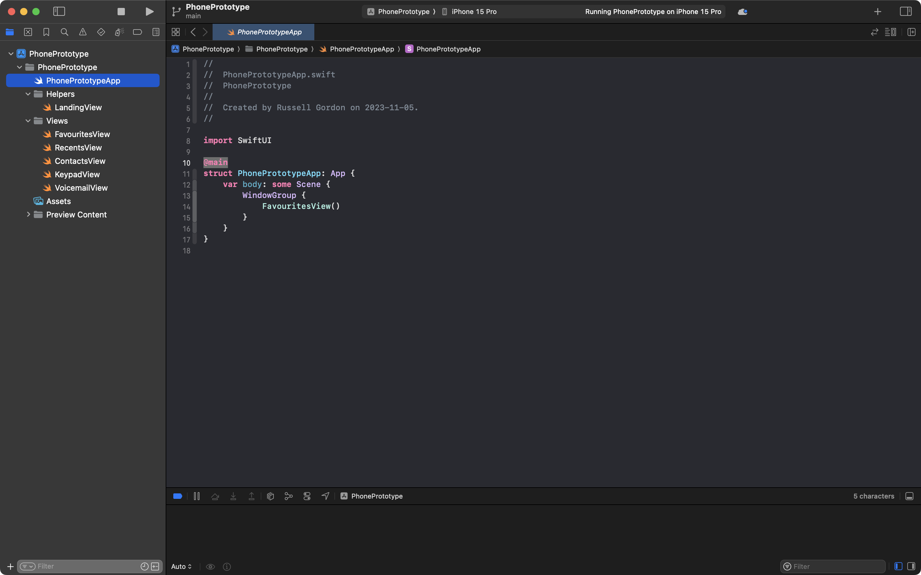 Parts of this tutorial were written a year ago, so the run destination shows as iPhone 15 Pro, whereas the run destination on your computer will likely show as iPhone 16 Pro. This is completely OK – it will not affect your ability to follow this tutorial.
