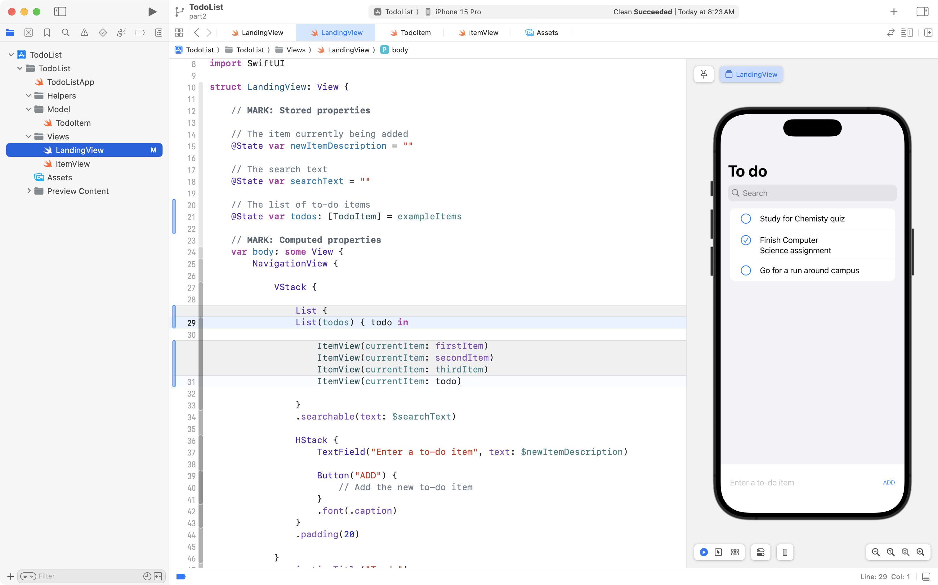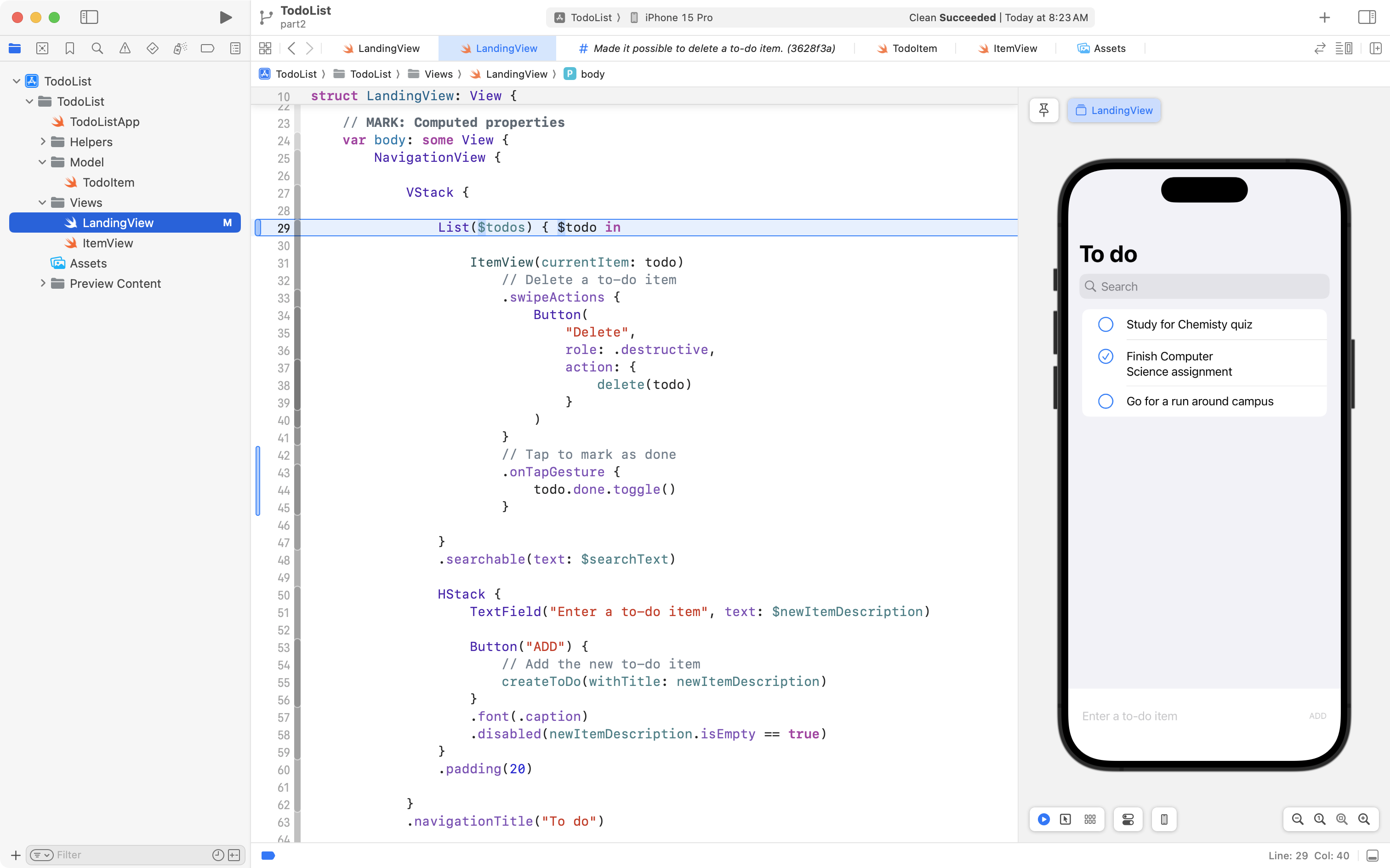 In the next part of this tutorial, you will learn how fix these issues, making more use of bindings, and the SwiftData framework to persist the to-do items within a database.