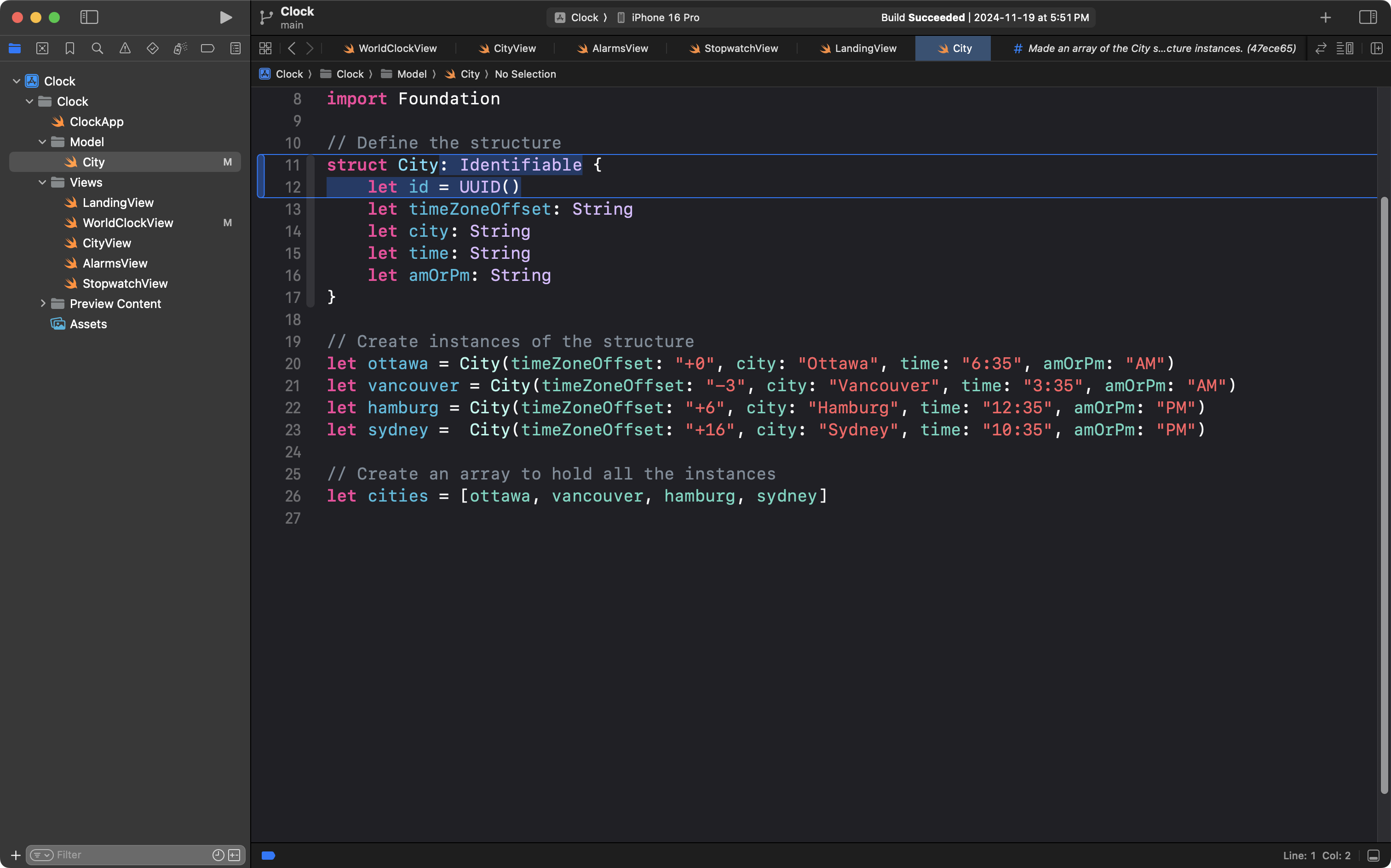 We can create a list – also known as an array – to hold all the instances of the City structure, like this: