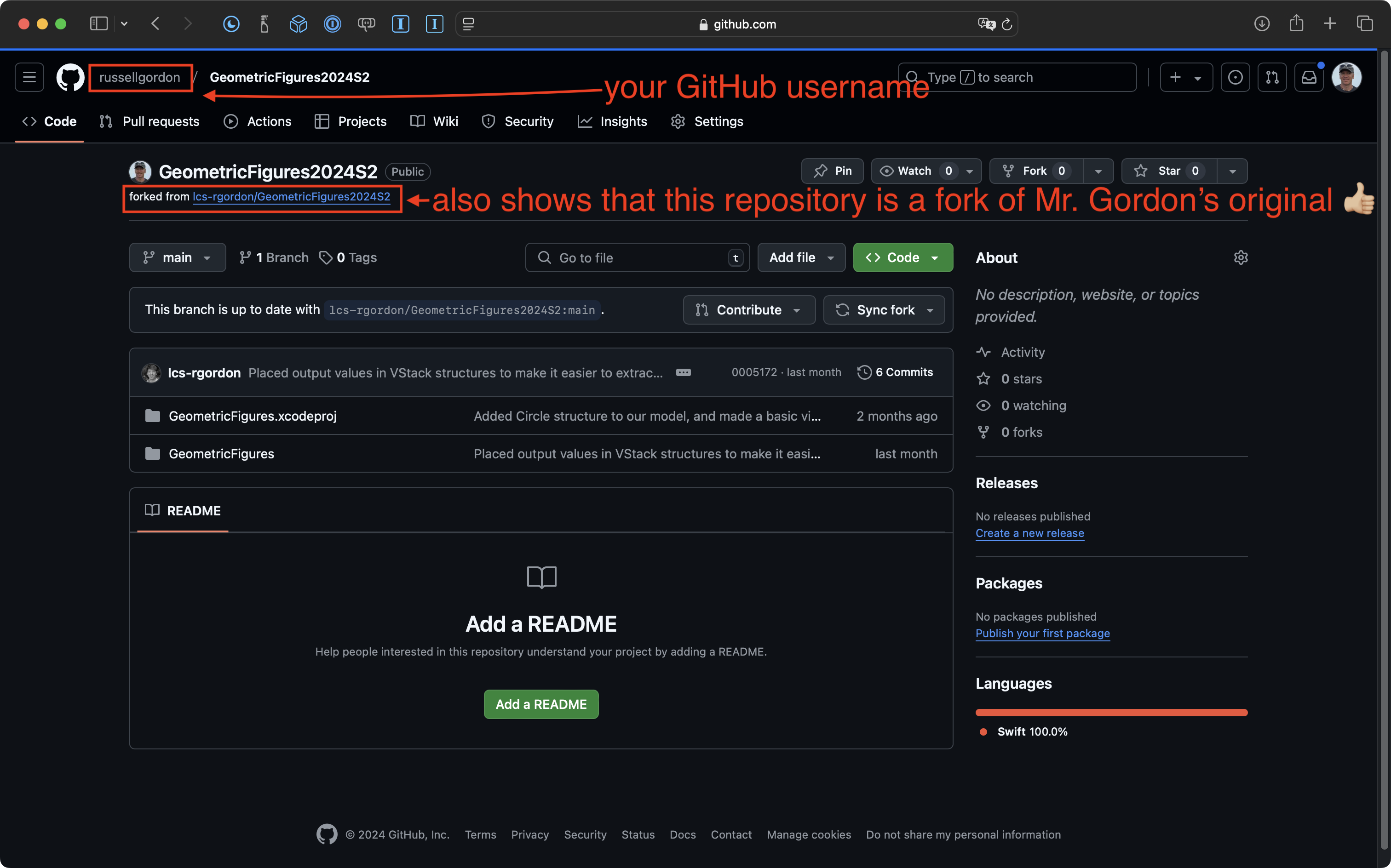 Please follow this link to see Mr. Gordon’s repository for his Geometric Figures app – then create a fork of his repository, and clone your fork to your own computer.