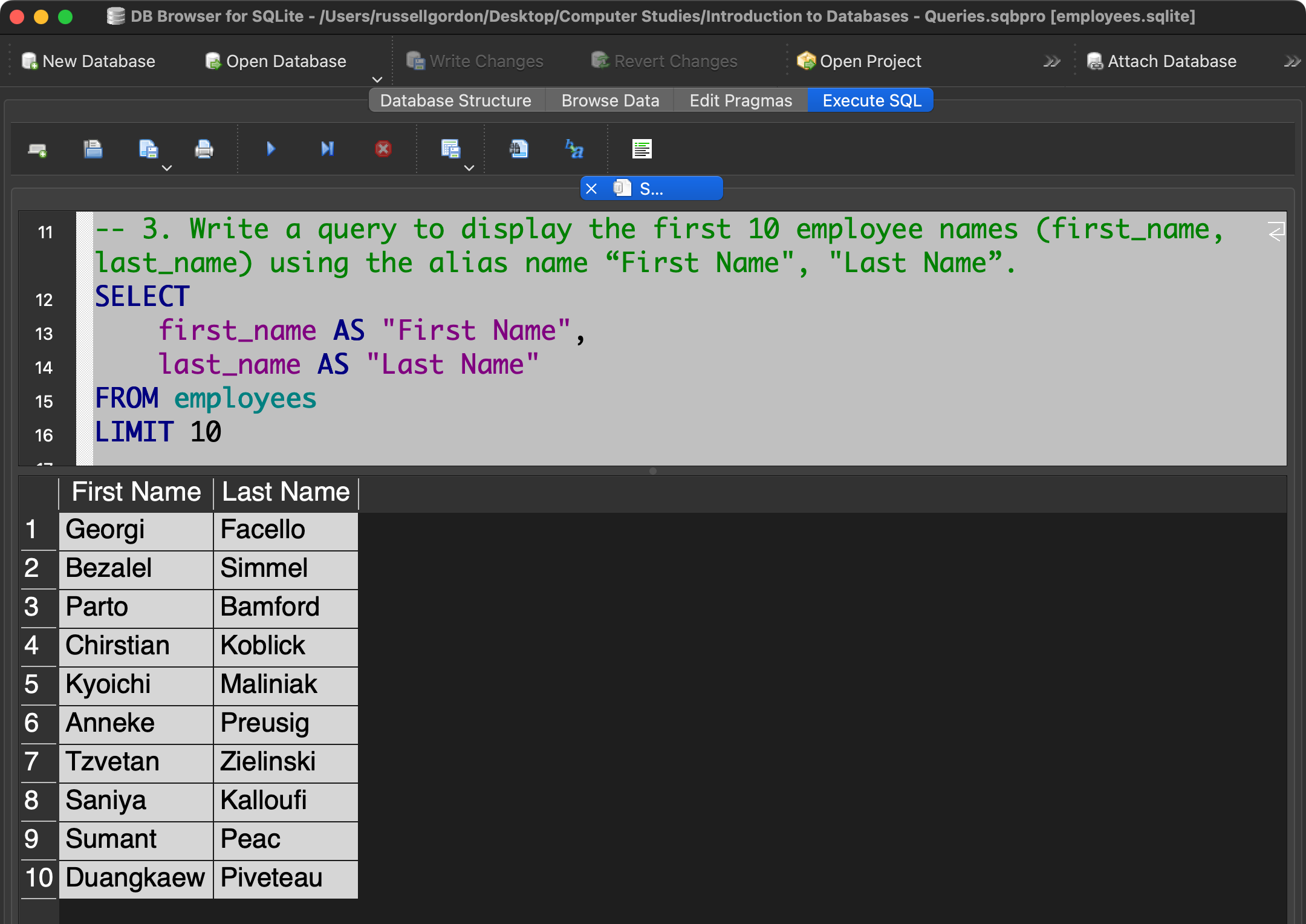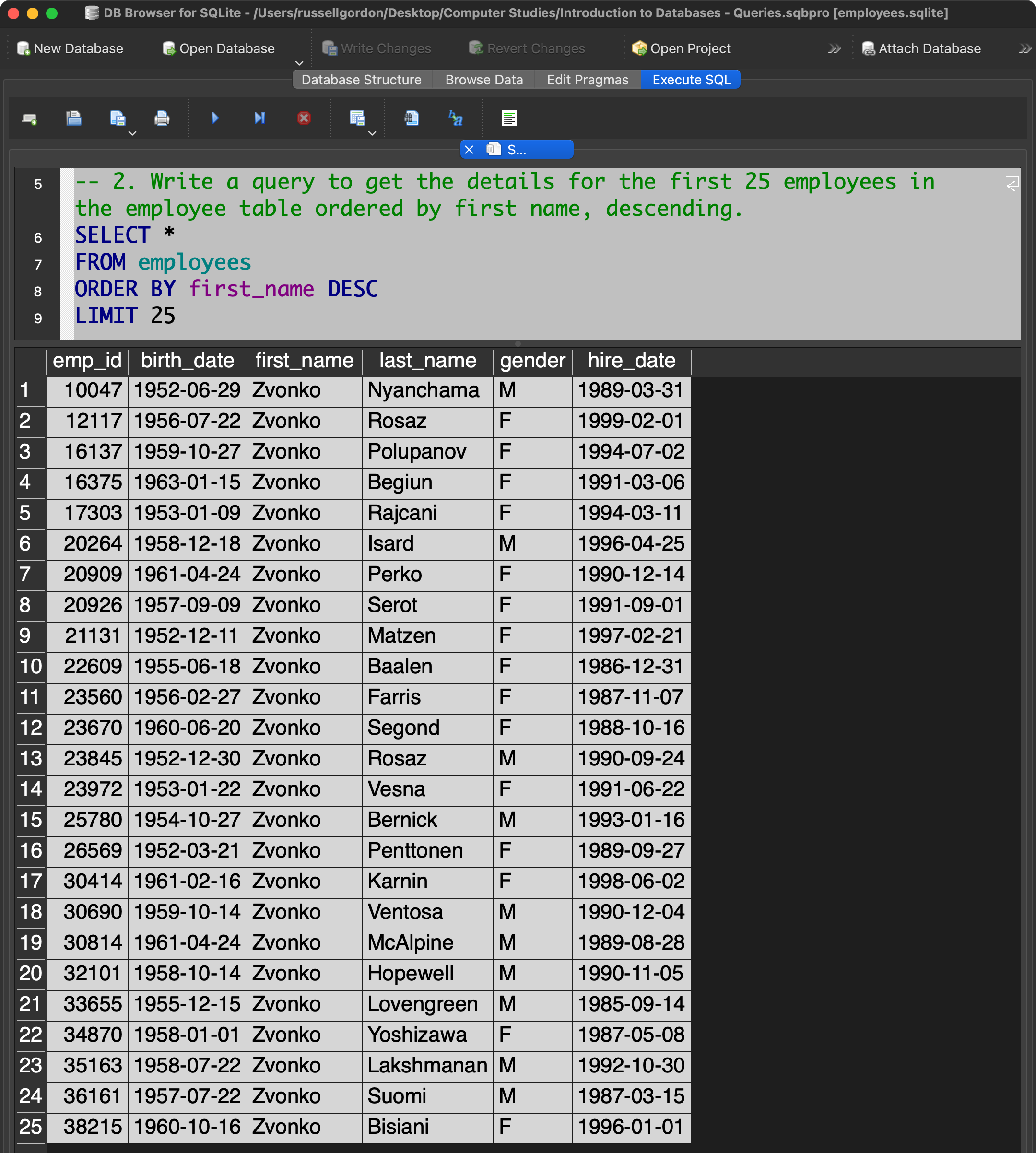 ORDER BY first_name DESC, last_name DESCTry making this change to the query and compare the new results to the original results.