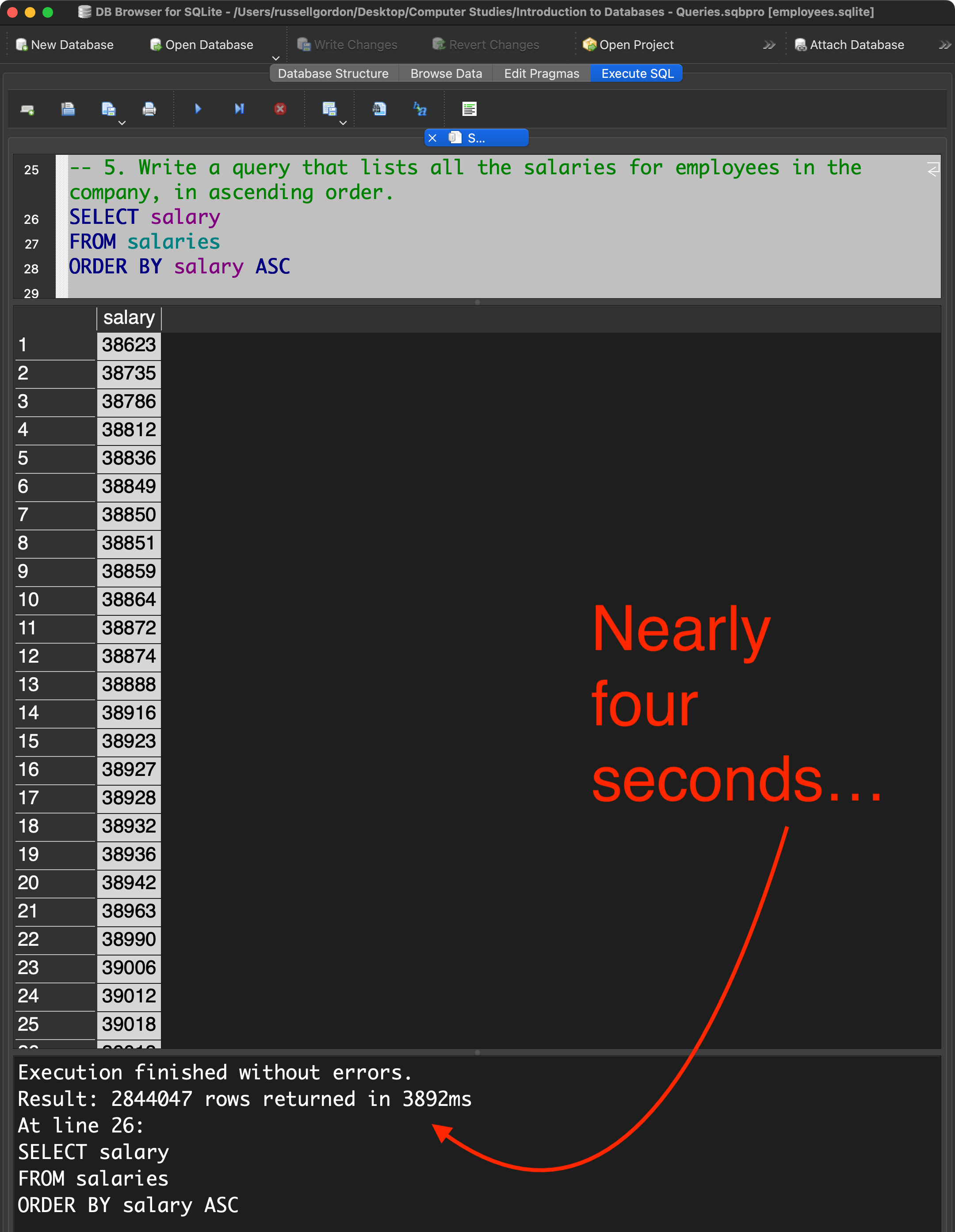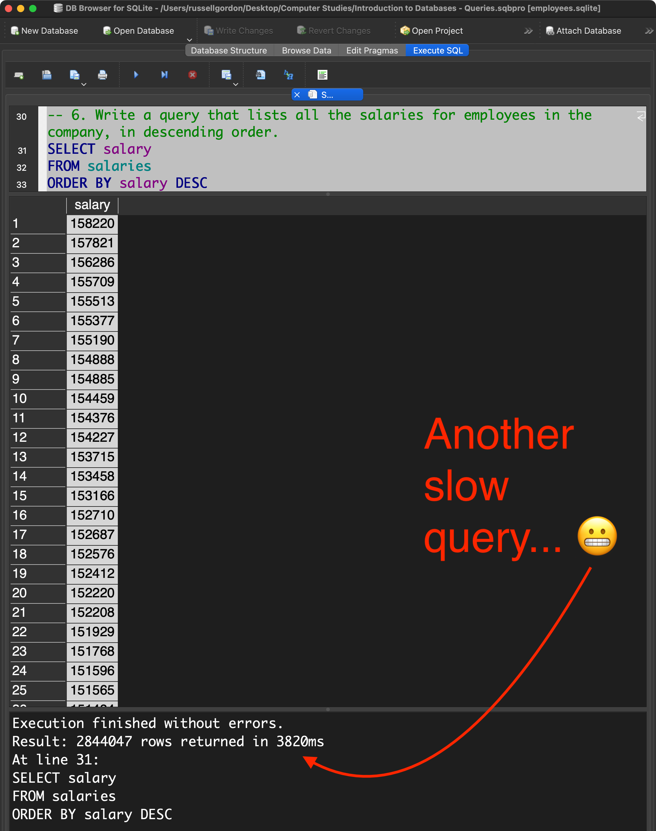 Apologies as this query may have taken a long time to execute on your computer. It took almost four seconds with an M1 Pro processor; this took a lot longer to run on Macs with older processors.