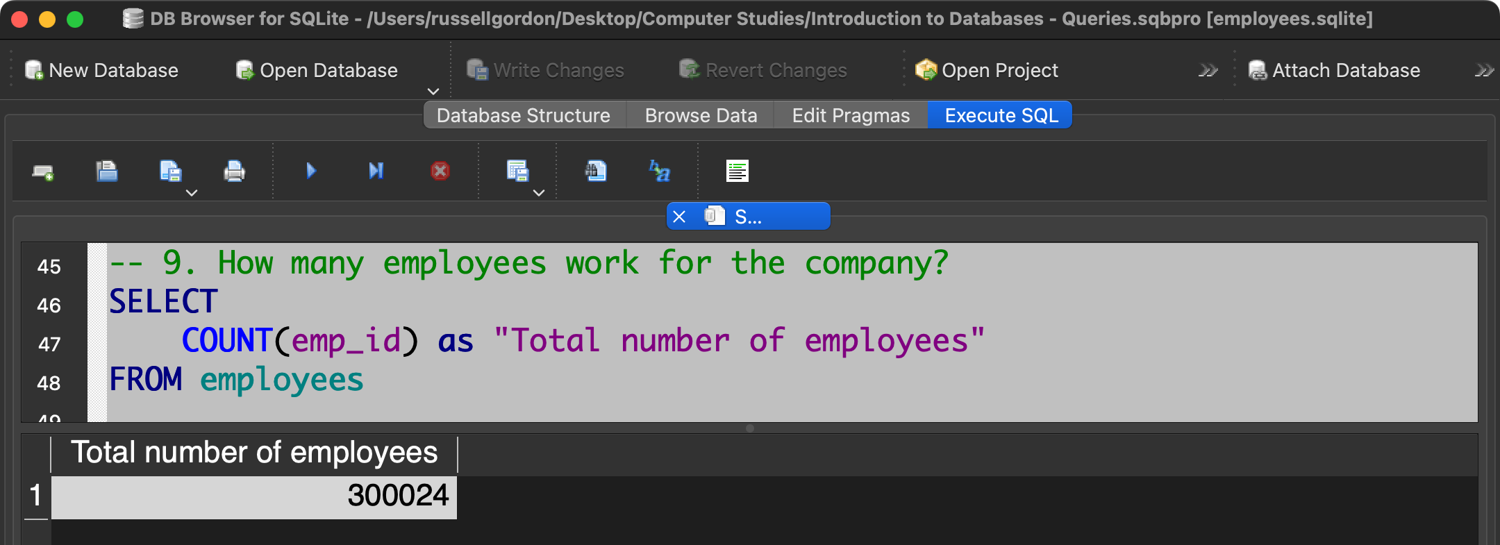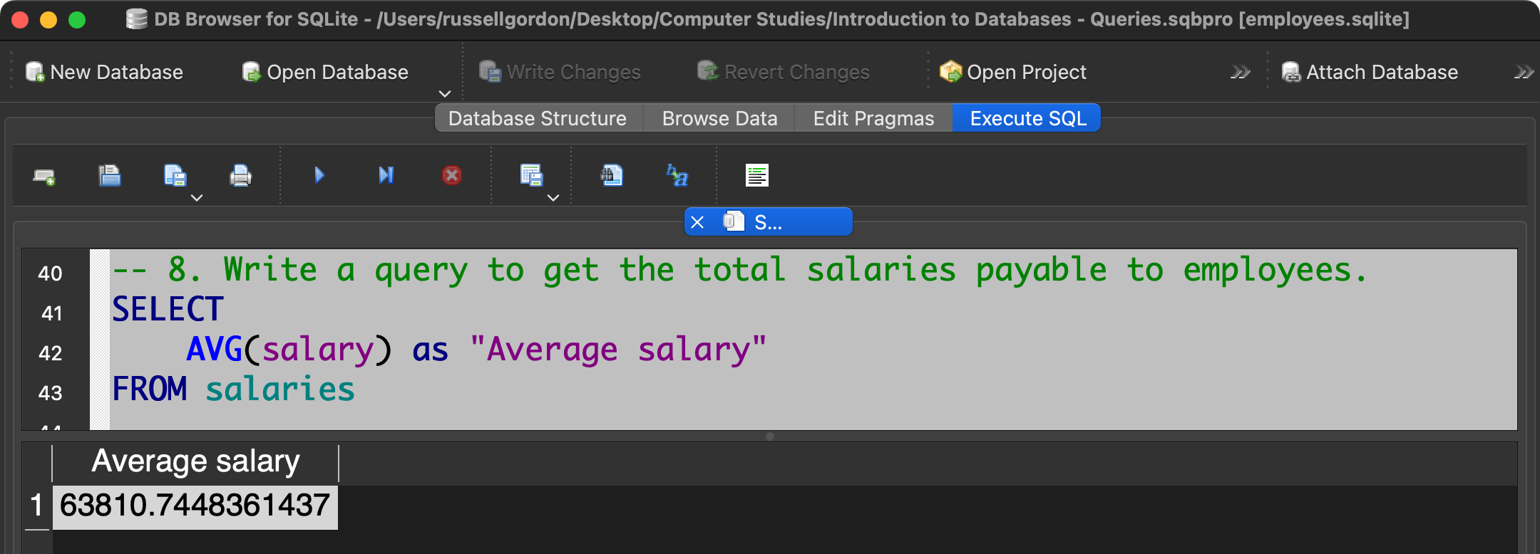 SUM(salary) AS "Total salaries payable"…is not strictly required, but helps to make the results more readable, since the column title will show as