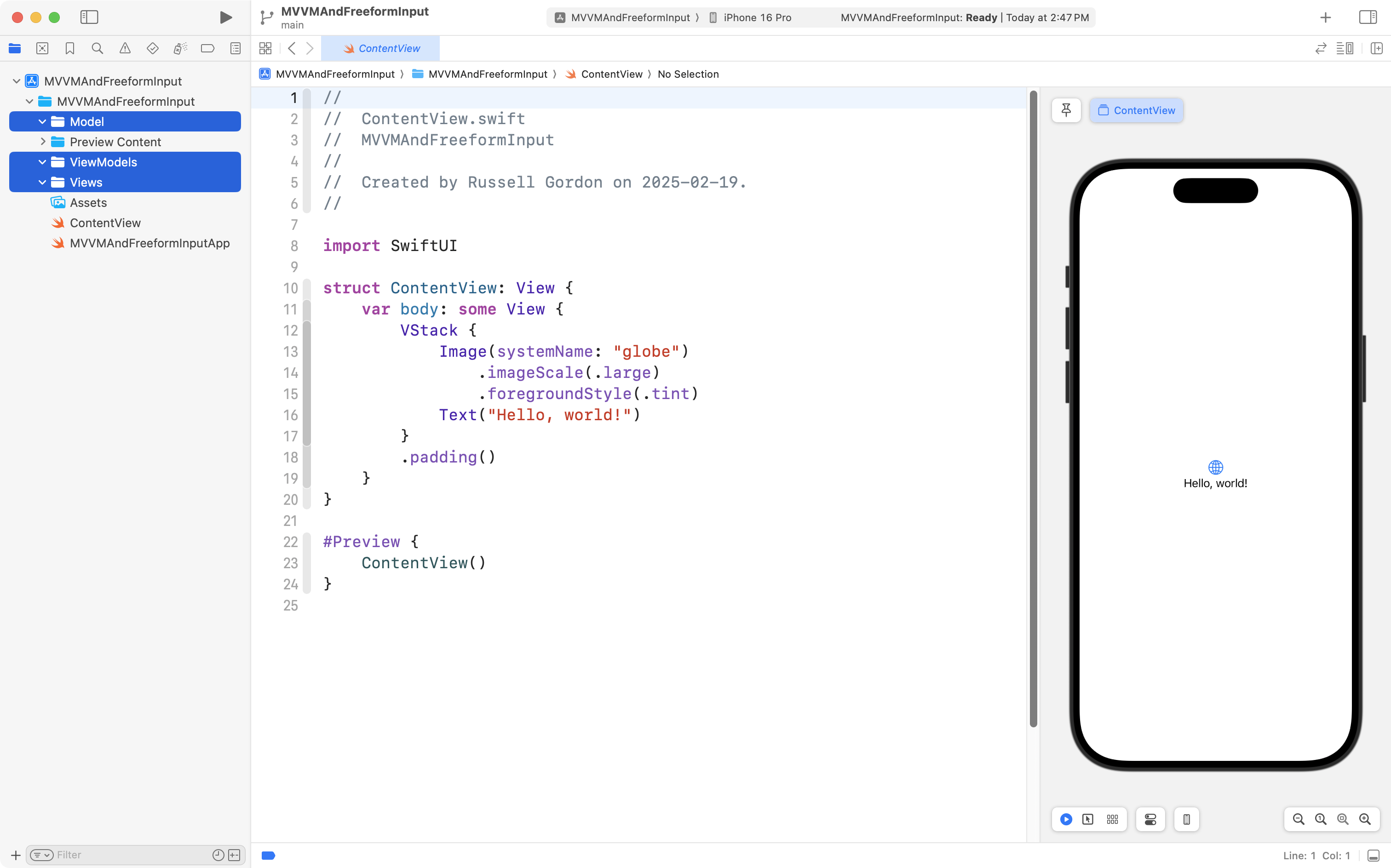 We will first work within a playground, so that we can focus on learning how the MVVM design pattern works at the model and view model layers.