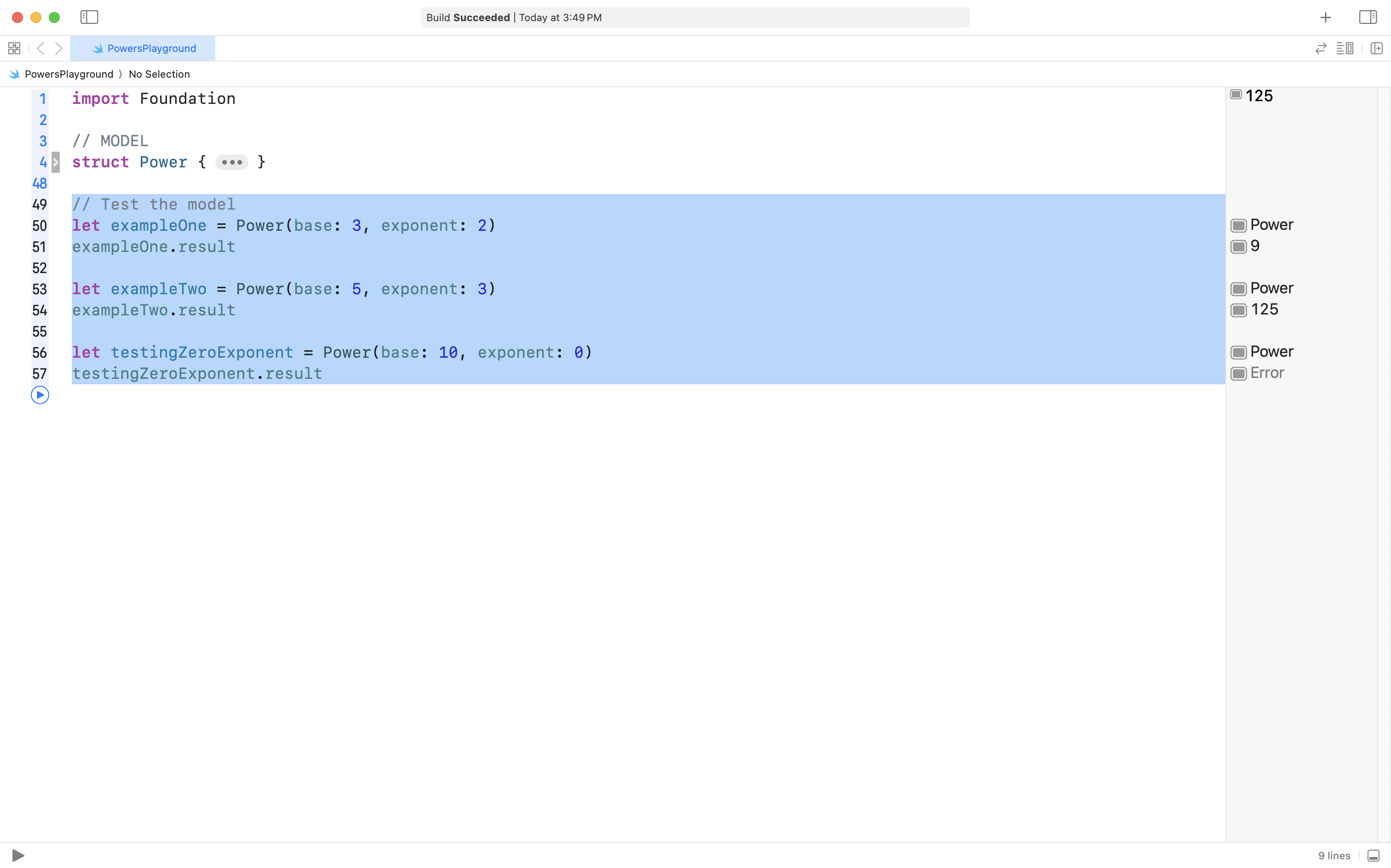 Please create a new macOS playground named PowersPlayground, like this: