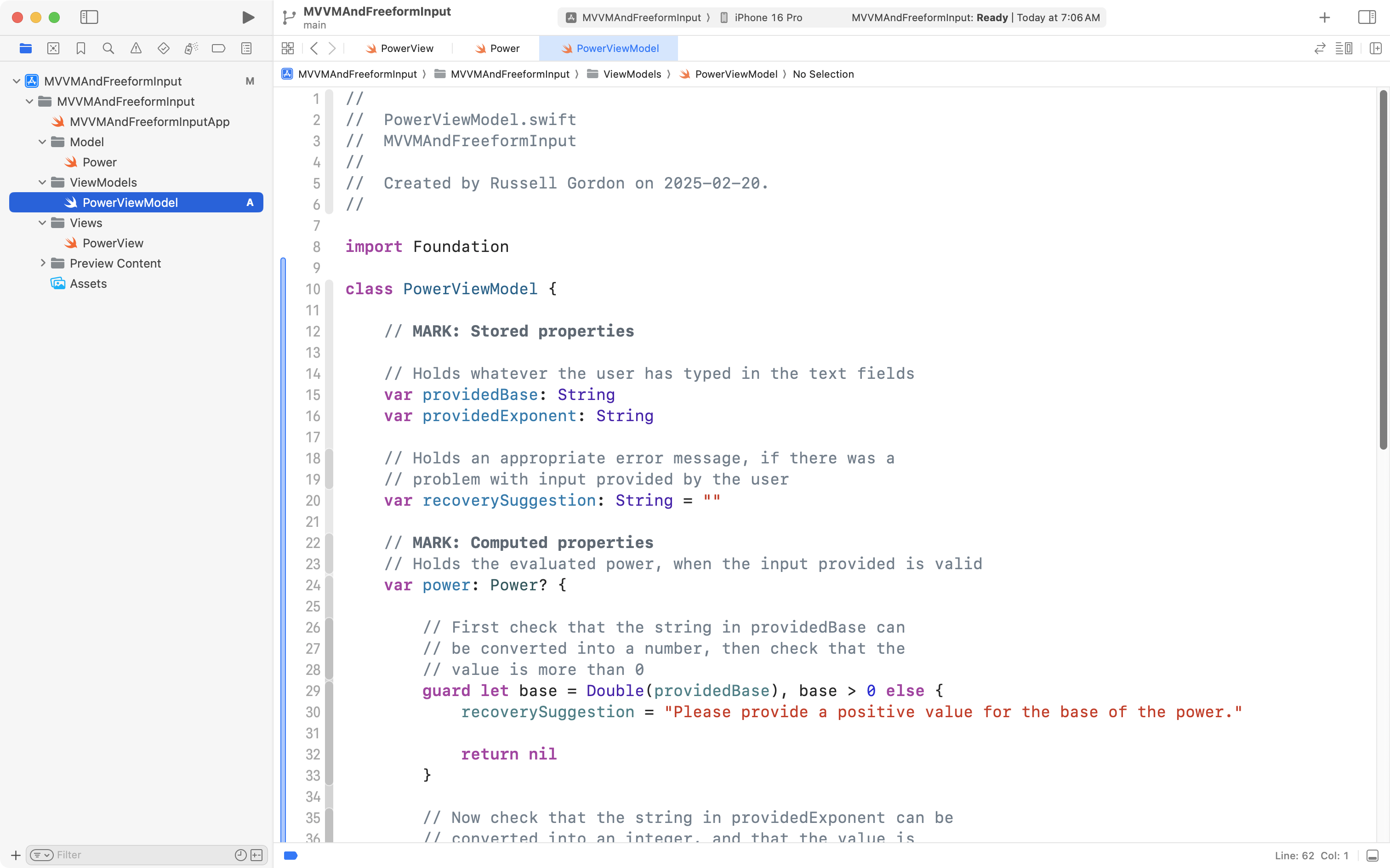 That’s all that we need to do! This makes use of the Observation framework, which does all of the heavy lifting to ensure the user interface updates when values inside the PowerViewModel class change.