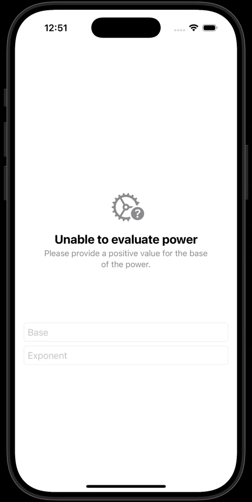 When a negative exponent is provided, the app currently returns an error message.
