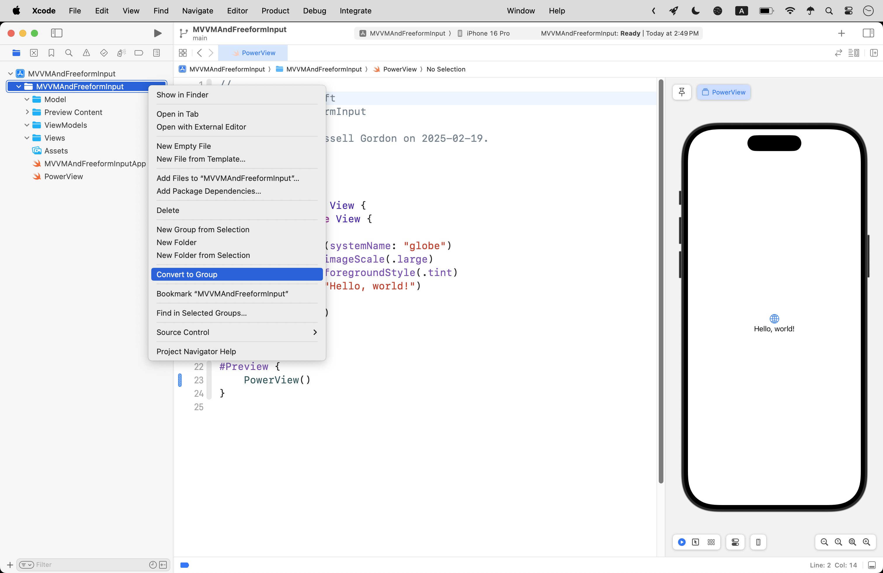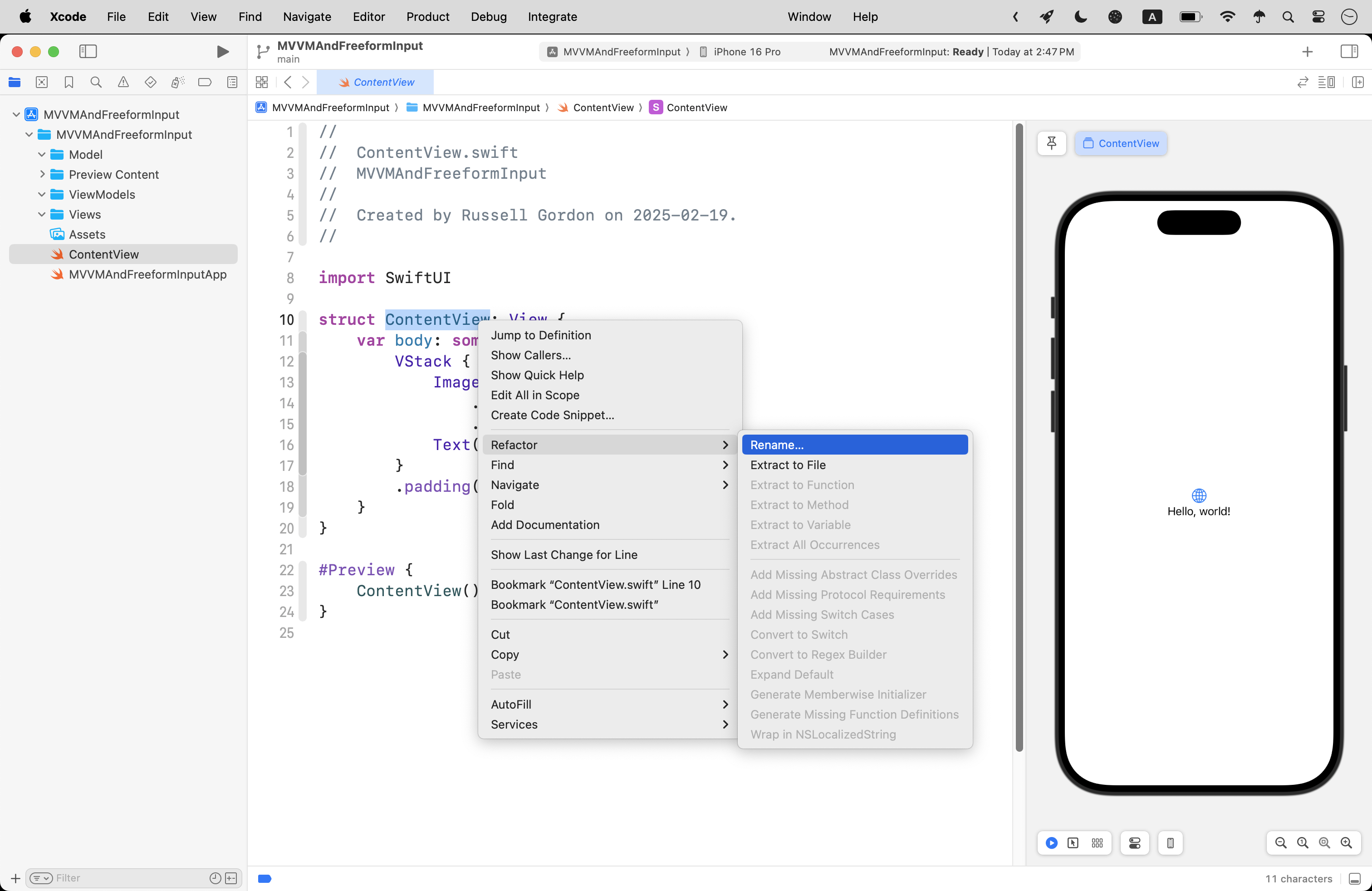 Try modifying the model, and then the view model, first within the playground you set up earlier. Once you have the code there working correctly, move it into your project.