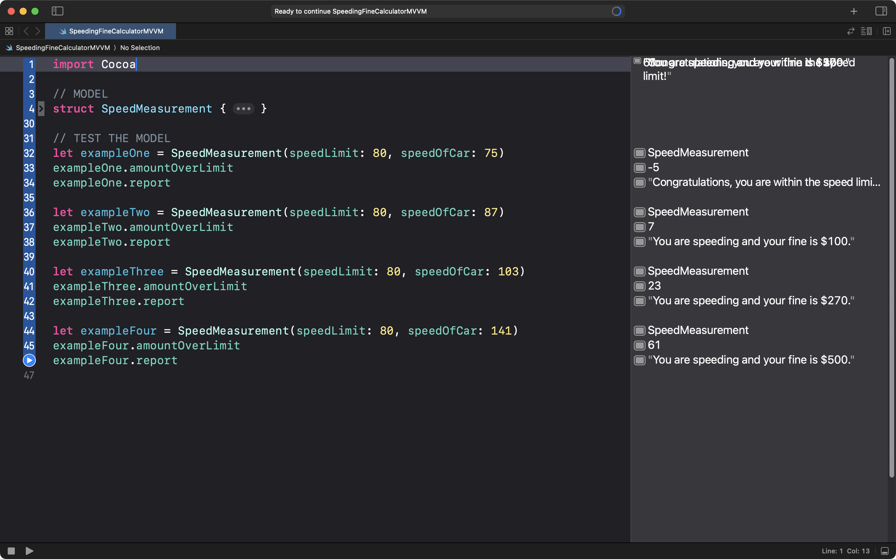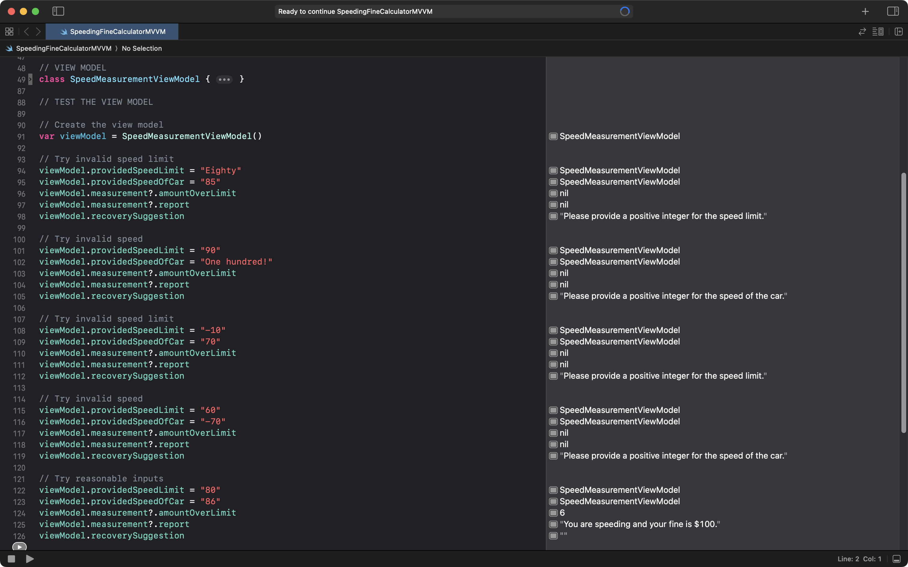 Here is Mr. Gordon’s work to author and test the view model in a playground: