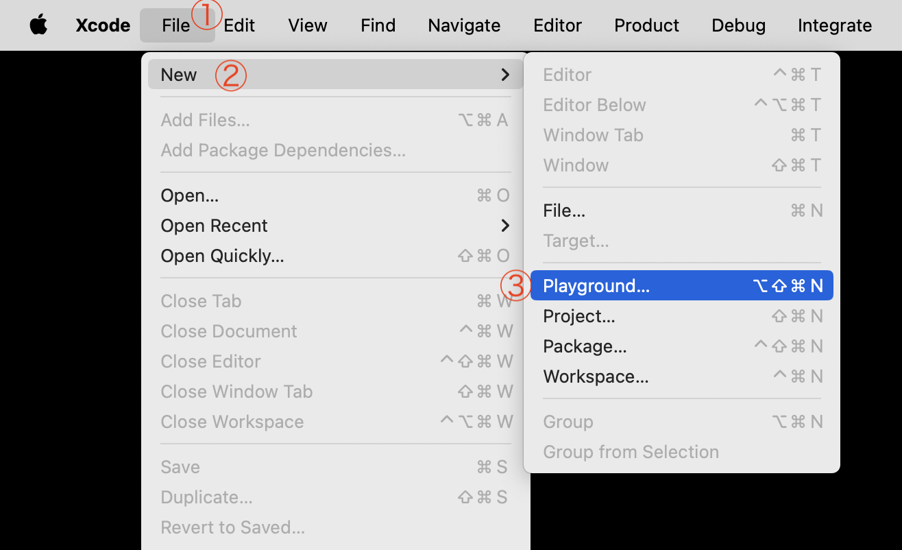 From the menu bar at top left, choose File > New > Playground…: