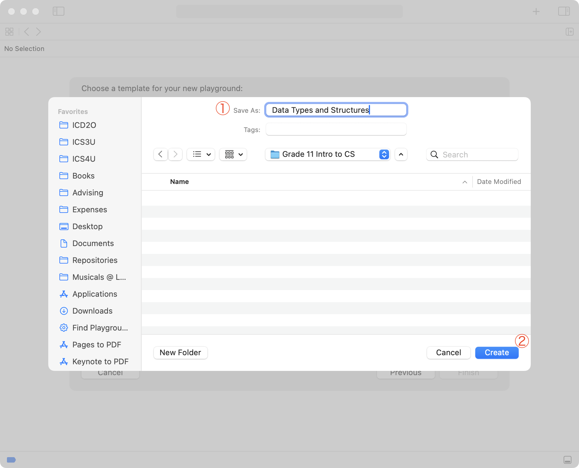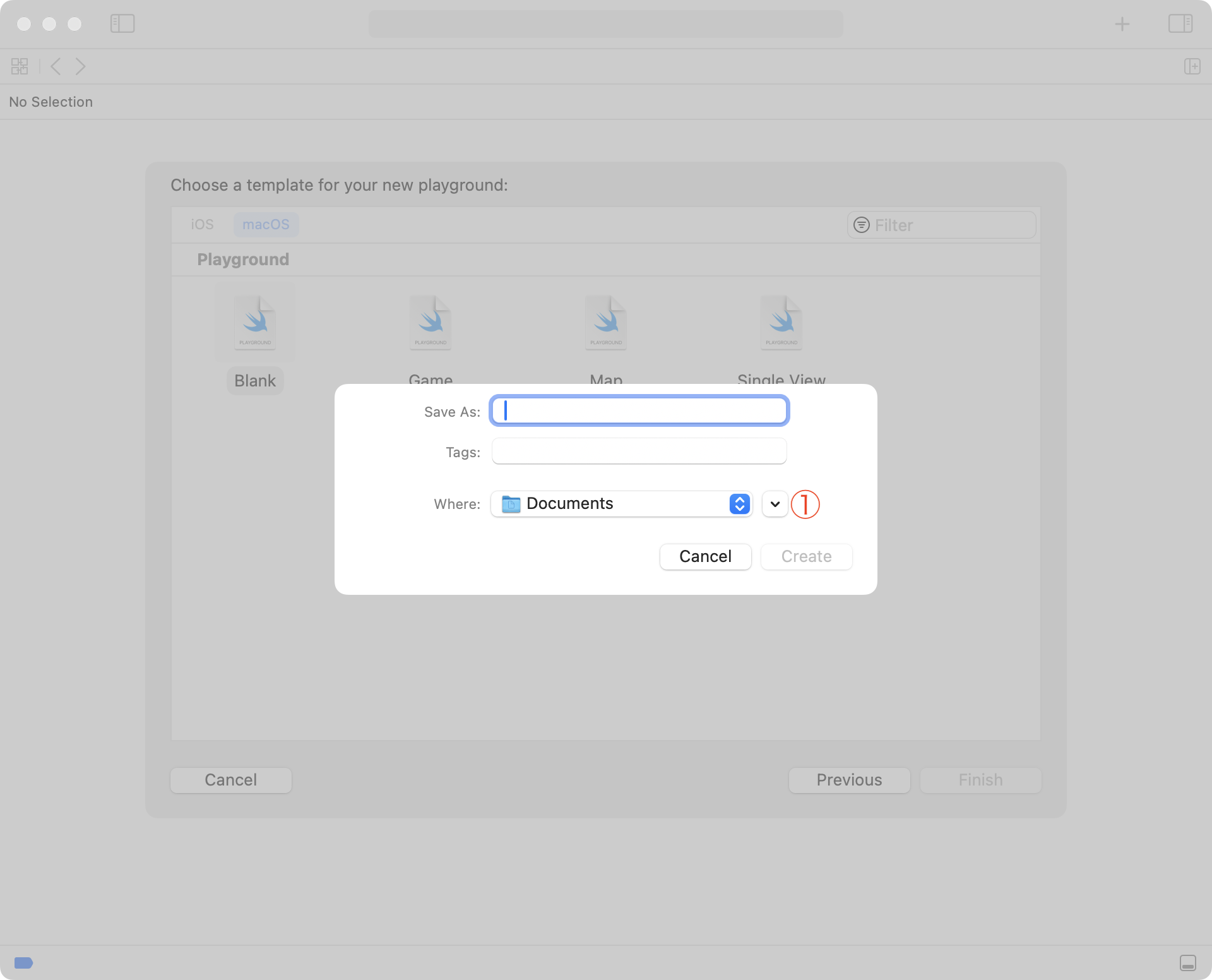 Navigate to the folder where you want to save your Xcode playground.